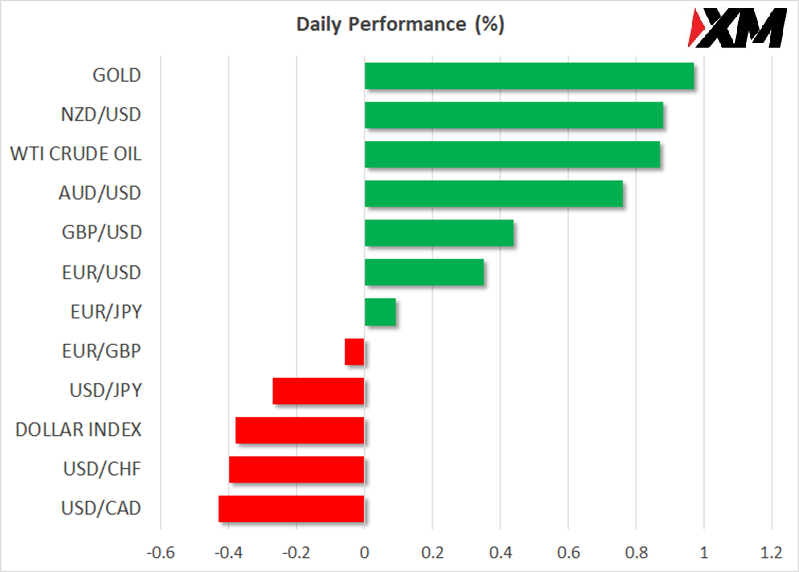 美元兑所有主流货币,包括避险货币日元和瑞士法郎,都转为下跌,因此拖累美元指数跌至三周低点。