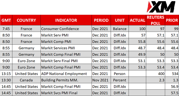 自美联储12月会议以来,几位美联储官员已陆续发言并解释他们转鹰的理由,因此会议纪要不太可能在市场上引发震荡。反之,美国ADP就业数据可能更受关注,因为交易员会根据这份报告调整他们对周五官方就业报告的预期。