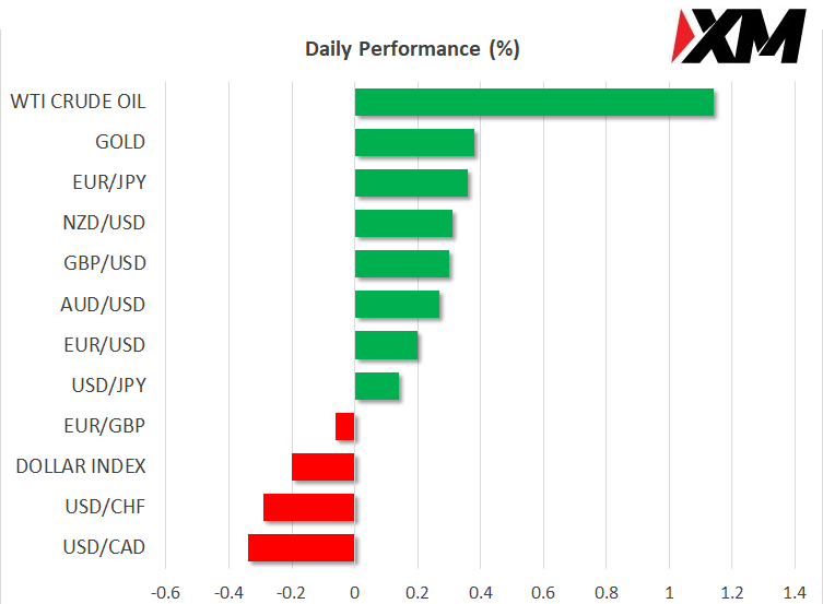 在货币市场上,美元兑一篮子货币走弱,因为美国10年期国债收益率小幅回落,而风险偏好情绪则在科技股反弹的支撑下有所改善。对风险敏感的商品货币兑美元均走强,英镑也走高,并创下1.3619美元的两个月新高纪录。