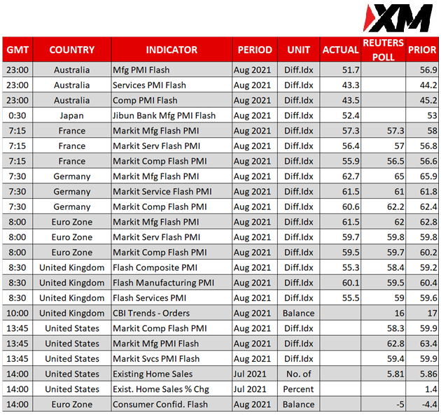 在近几周内,亚洲区域由于Delta感染潮而加强封锁措施,加上中国针对其国内科技巨头的整治行动,两个因素同时重挫了亚洲股市,而阿富汗的动荡局势更是加剧了下行风险。不过,周一的中国传来了些好消息,自7月以来官方首次报告没有本土感染的新冠肺炎(Covid-19)病例,表明最新的疫情可能正在改善中。