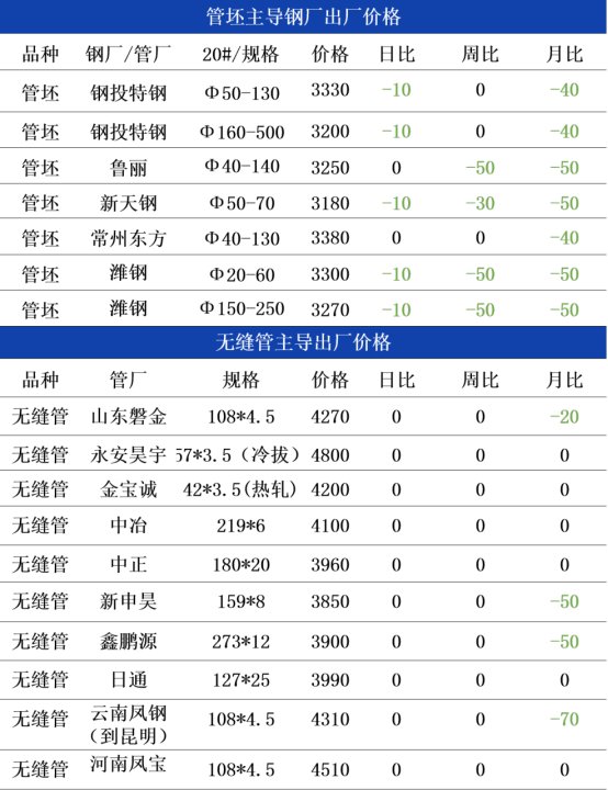 管坯:昨日期货盘面震荡偏弱运行,南北管坯价格小幅下调10-20元,商家出货表现一般,现货价格呈现偏弱态势。当前市场库存压力和缓,成本支撑下,管坯现货市场展现出韧性,部分市场反馈显示,当前需求虽偏弱,但略好于预期,由于短期内需求改善较难,商家谨慎操作,多数选择按需补库,综合来看预计今日管坯价格偏弱运行。