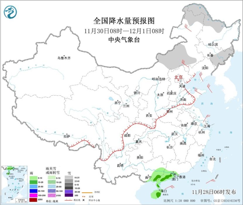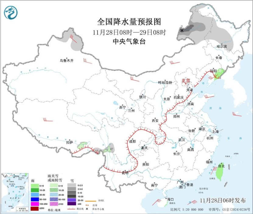 另外,28日夜间至30日,新疆阿勒泰地区、内蒙古东北部、东北地区北部和东部有小雪或雨夹雪,其中,黑龙江中西部有中到大雪,局地暴雪。